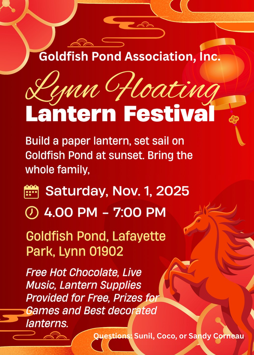 From the Goldfish Pond Association: On the eve of Daylight Savings, Saturday November 1, come and build a Japanese Floating lantern with us at Goldfish Pond. Easy to do and kids will really enjoy this so bring the whole family! We will have all the supplies and teach you how to build the lantern. We will set them on the water all at once at Sunset. There will be hot chocolate for all. We will also have a sidewalk art contest for kids.