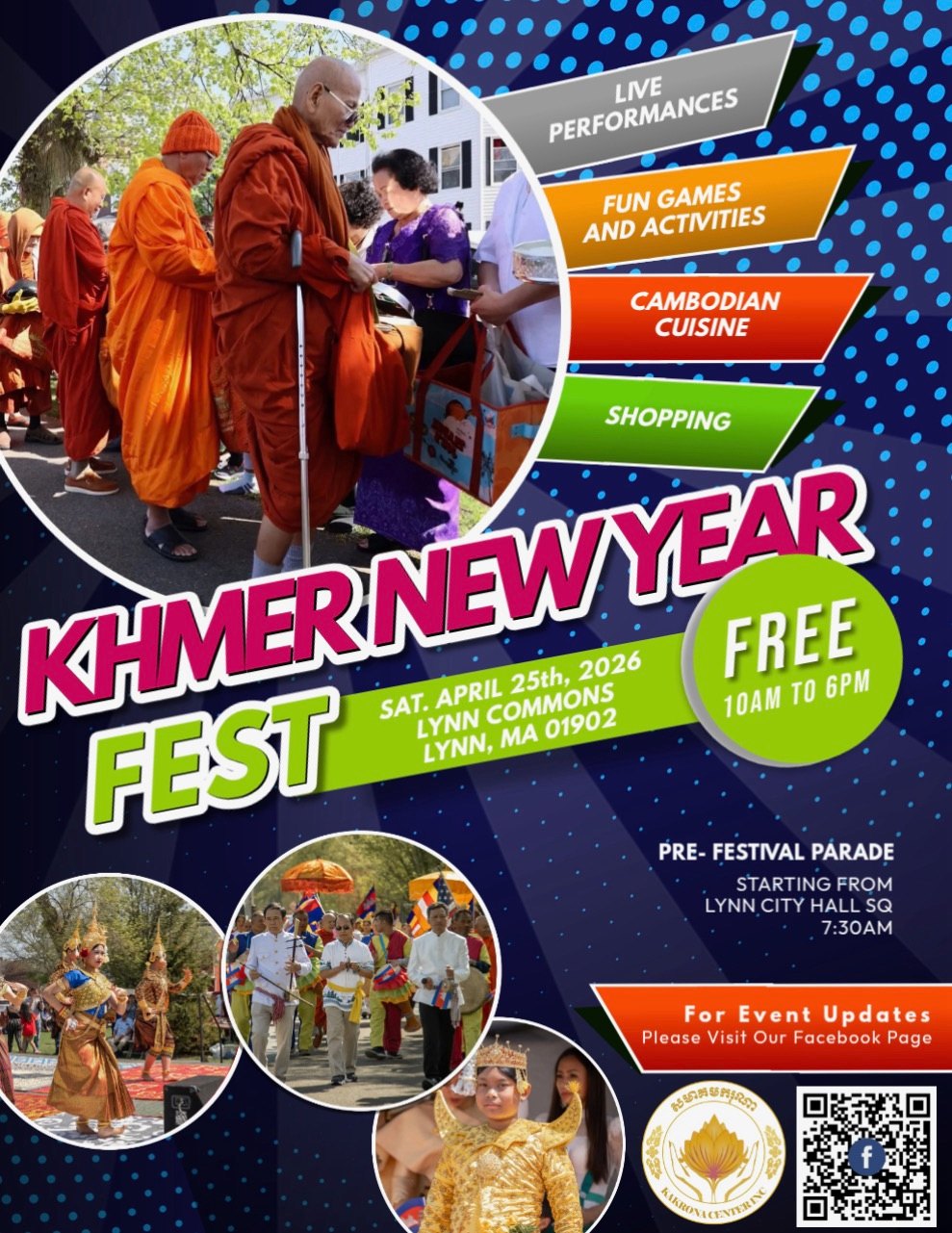 From Kakrona Center Inc.: The Khmer New Year Community Fair is our signature event, a day when the historic Lynn Commons is transformed into a sea of color, music, and cultural pride. This festival is a labor of love for Kakrona Center Inc., designed to welcome the new year with open hearts and a shared spirit of “Khmer Help Khmer.” It serves as a vital bridge between generations and a platform for our community to showcase the richness of Cambodian cuisine, traditional arts, and modern performances to the greater Lynn area.