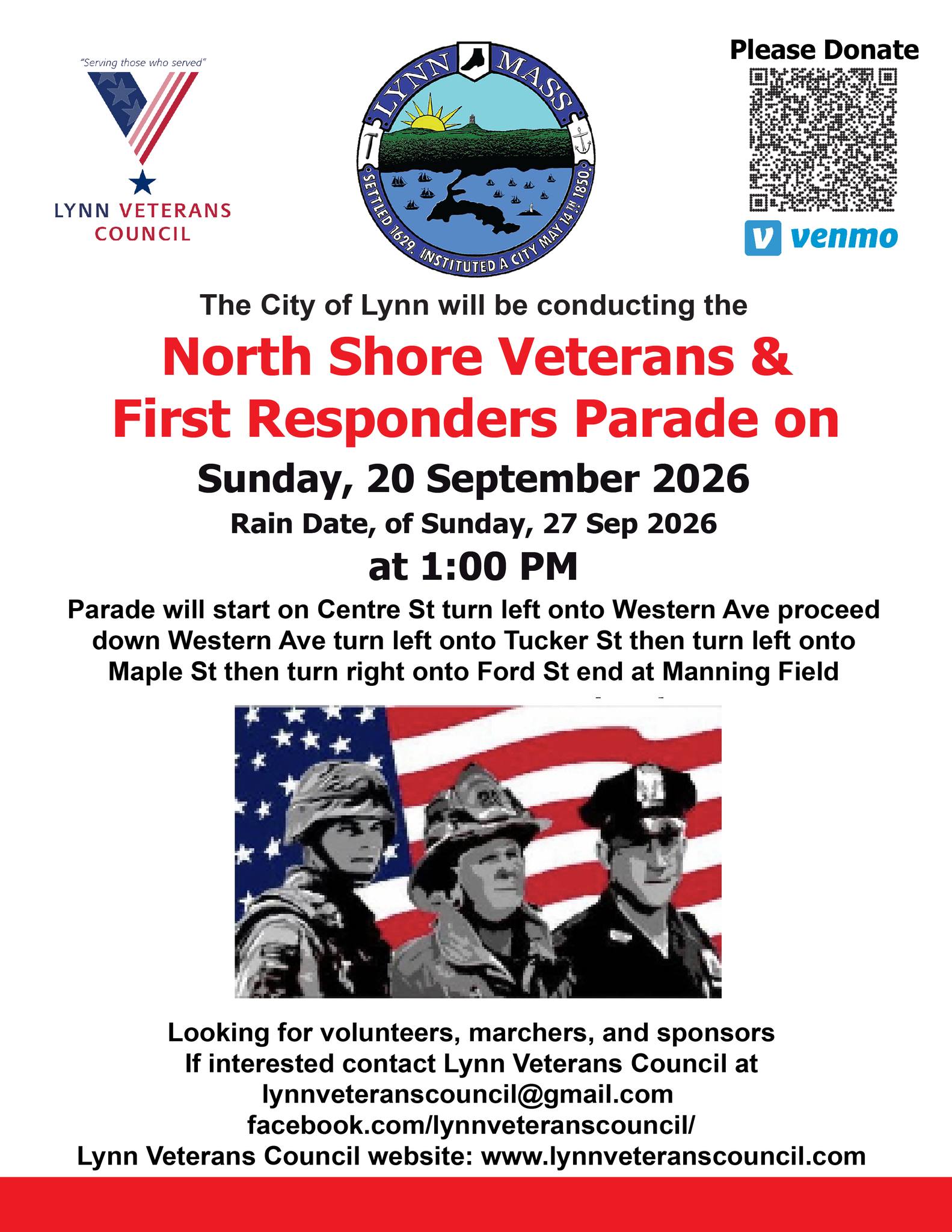 From the Lynn Veterans Council: The Lynn Veterans Council is currently looking for volunteers, marchers, sponsors, and donations – more details will be announced closer to the event.