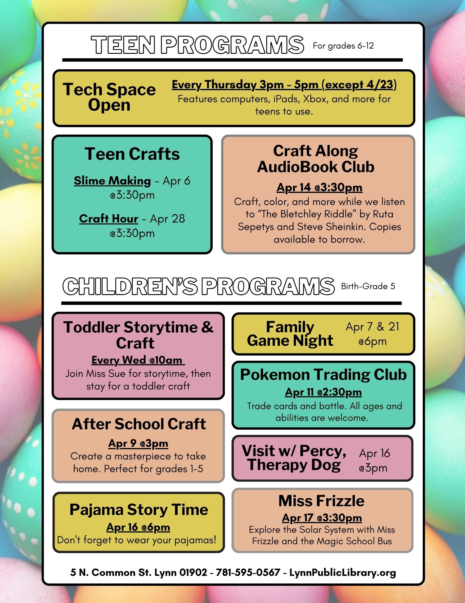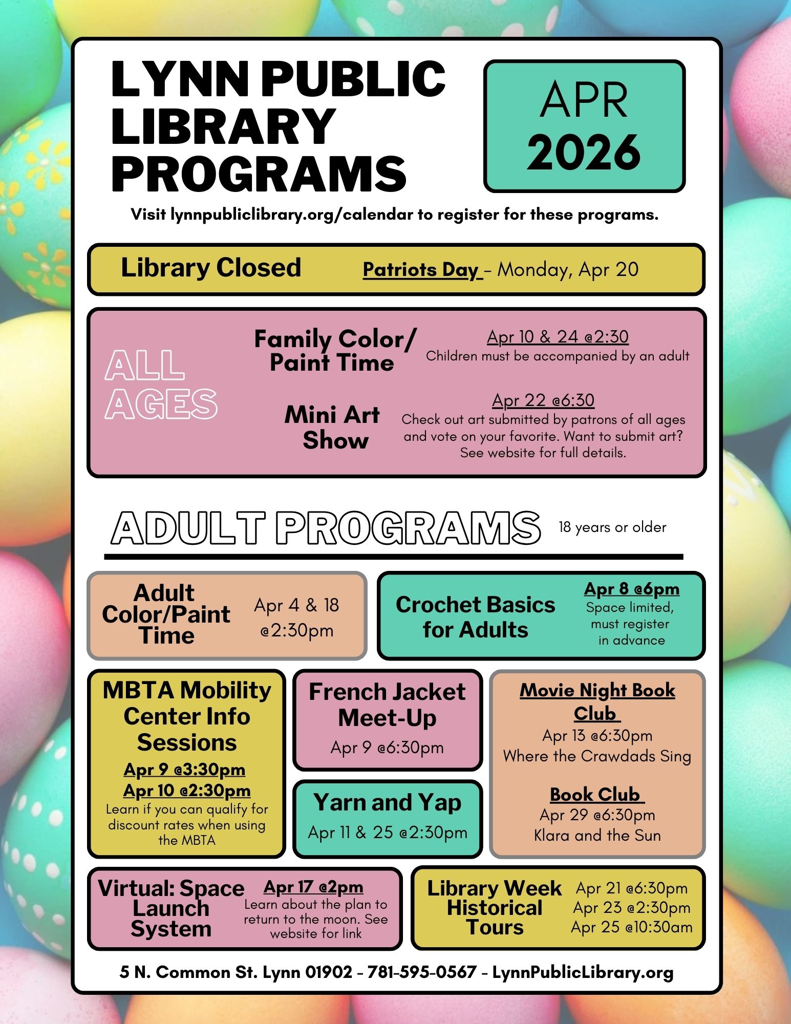 Visit lynnpubliclibrary.org/calendar for more details and to register for these programs.
