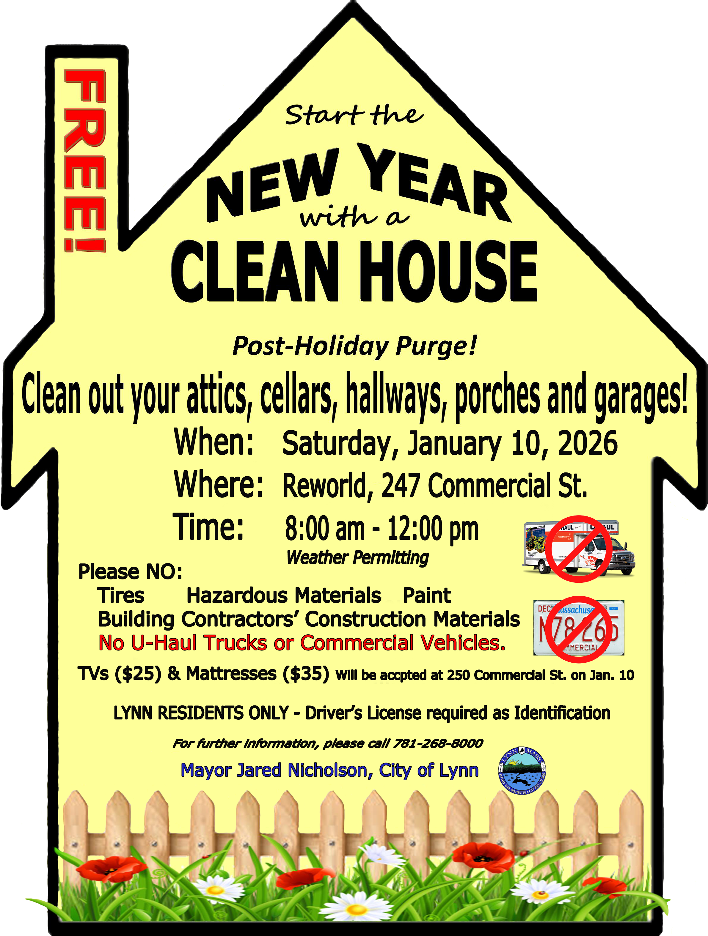 From Lynn DPW: Start the NEW YEAR with a CLEAN HOUSE…clean out your attics, cellars, hallways, porches and garages!