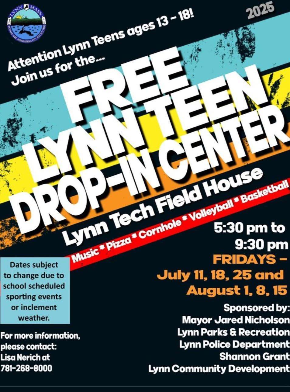 Supported by the Mayor’s office, Lynn Parks and Recreation Department, Lynn Police Department, Shannon Grant, & Community Development. For more information, please call Lisa Nerich 781-286-8000
