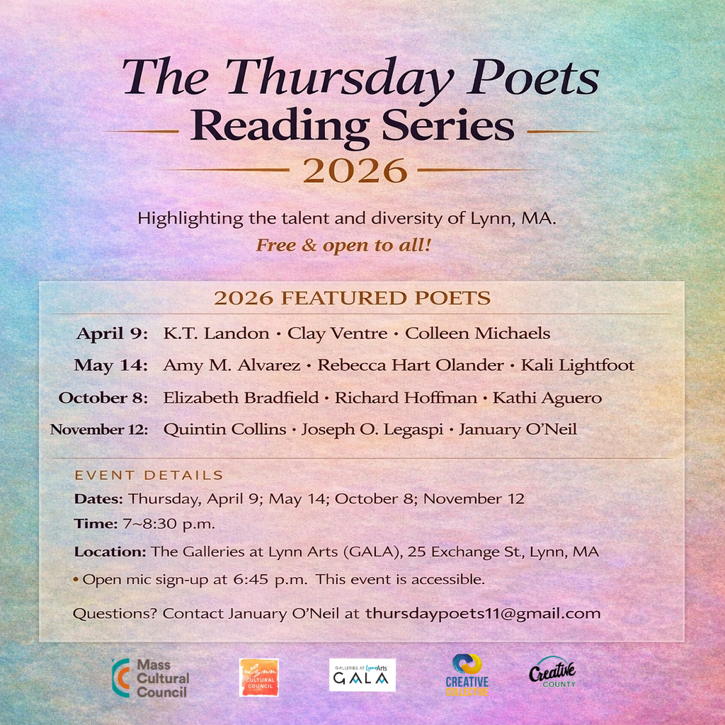 From January O’Neil: The Thursday Poets Reading Series, celebrating the talent and diversity of Lynn, returns!