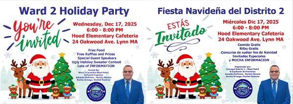 From Ward 2 Councilor Obed Matul: We are doing it again!! Join us for our Annual Ward 2 Holiday Party. This year it will take place on Wednesday, December 17th from 6pm to 8pm at the cafeteria of HOOD ELEMENTARY SCHOOL located at 24 Oakwood Ave. Lynn MA Free Food, Special Guest speakers, City Information […]