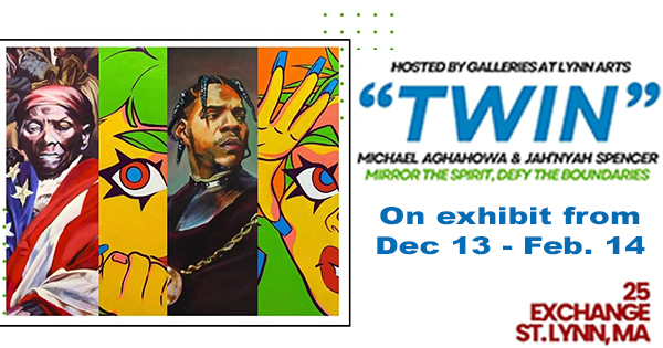Click for opening night flier From Galleries at LynnArts (GALA): The exhibit TWIN-Mirror the Spirit Defy the Boundaries is open Dec 13 - Feb. 14, with Opening night on December 13 from 6-9pm. TWIN is a joint exhibit by artists Jay’Nyah Spencer and Michael Aghahowa a celebration of friendship shared roots and artistic freedom. Growing […]