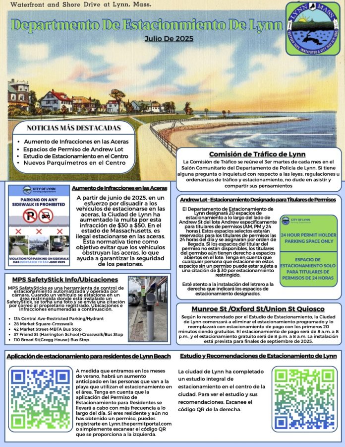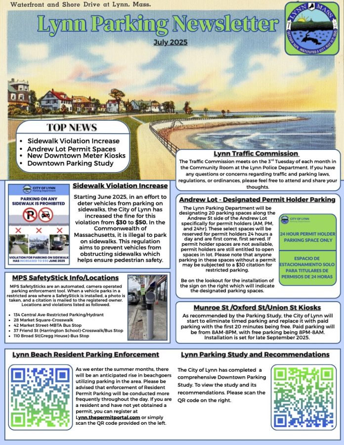 To keep folks informed, the Lynn Parking Department is distributing a newsletter for the month of July. You will find parking-related information for the City of Lynn below.