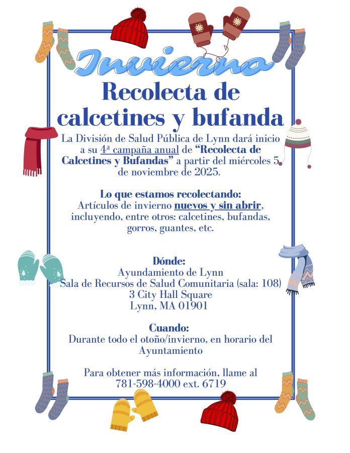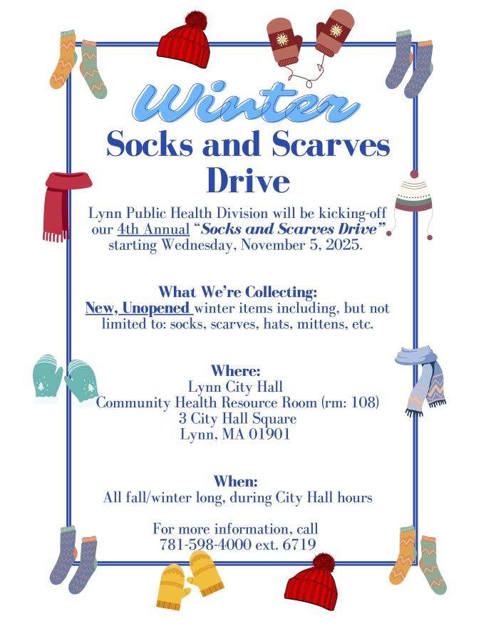 The Lynn Public Health Division is holding their 4th Annual “Socks and Scarves Drive” running through the winter, during City Hall hours.