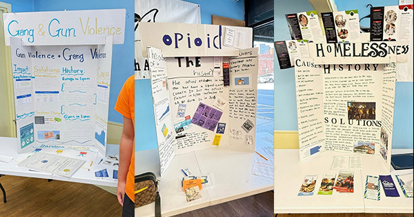 Over 7 weeks seven youth worked on this project, split into groups. To complete their research they used the internet, talked with community members impacted by these issues, and gathered resources from local businesses and organizations. Each display created contains information on the history about the issue, the causes, the impact, and solutions.