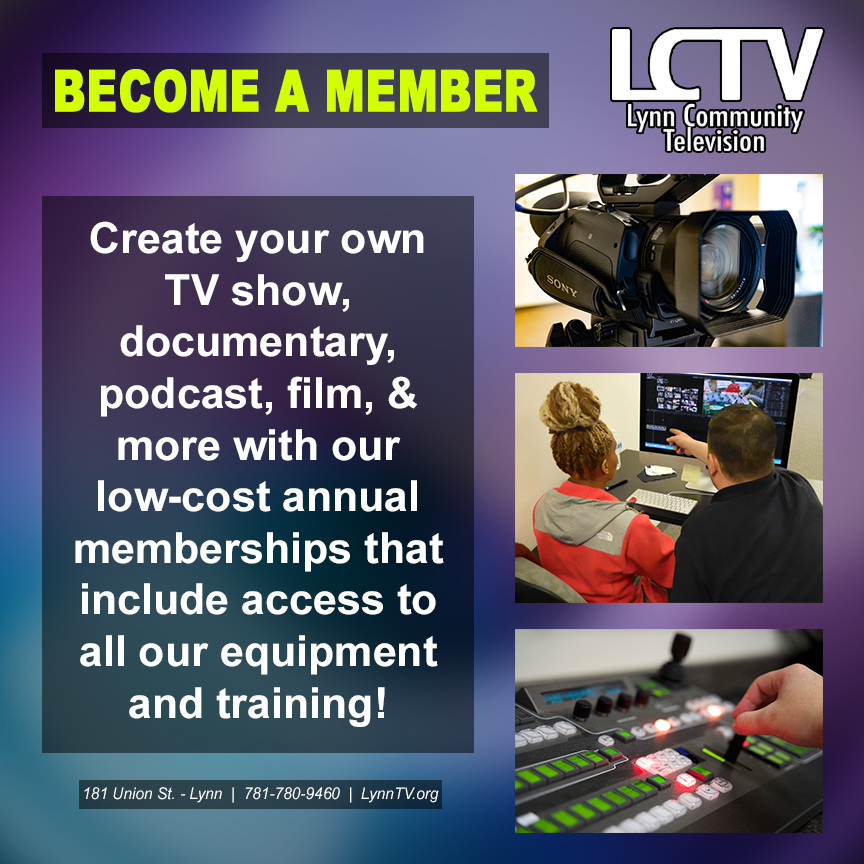 The non-profit, membership driven model LCTV operates by, positions us as an independent outlet for coverage of city boards and committees, civic life, the arts, and as a platform for members to create original programming. But, we need you to make it happen. So, thank you for your continued membership and involvement in Lynn Community Television. Whether you produce content, volunteer on a show, or engage with us watching on cable or online, we value your support. If you are not a member or need to renew, please follow this link for more information.