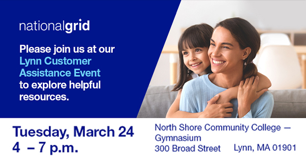From National Grid: Please join National Grid and the City of Lynn's Energy Advocate at our Lynn Customer Assistance Event to explore helpful resources. This savings event will be held on Tuesday, March 24, from 4 - 7 p.m. at the North Shore Community College - Gymnasium, 300 Broad Street, Lynn, MA 01901. We're here […]