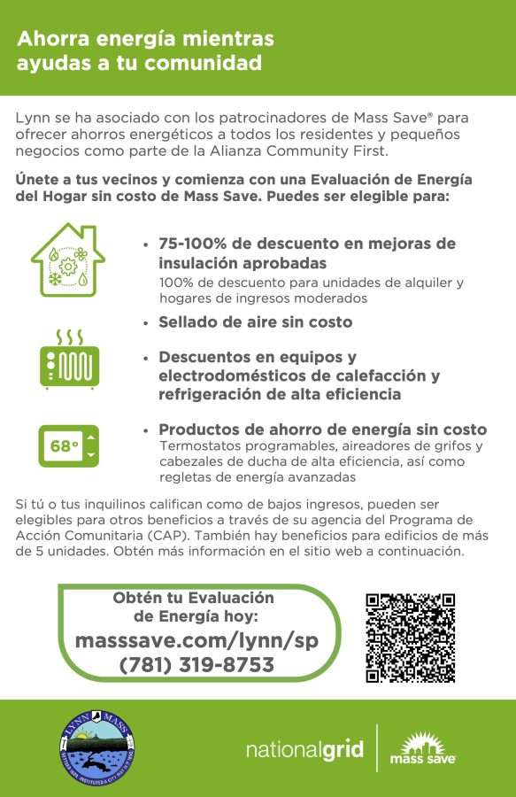 The City of Lynn has a new Energy Efficiency webpage where you can find materials on Mass Save and stay up to date with community outreach initiatives and programs in Lynn, also linked below.